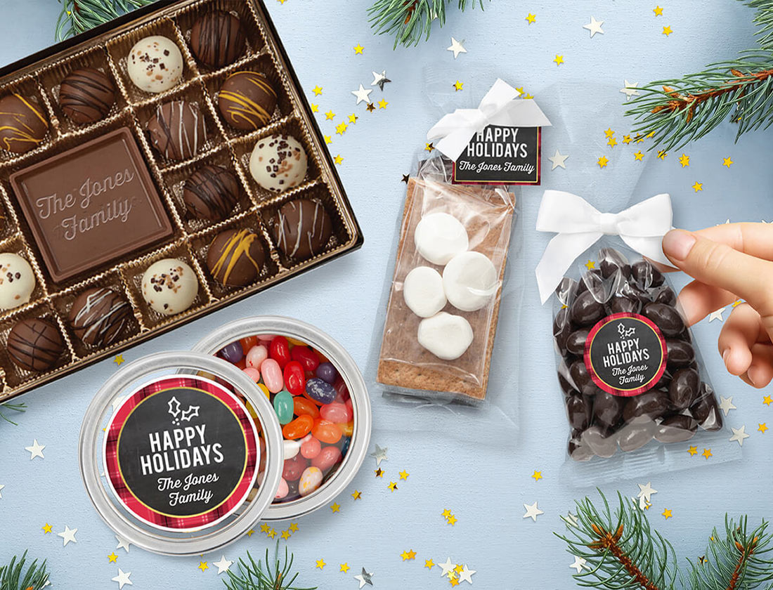 Surprise your customers with boxes of sea salt caramels customized with your logo! Browse our festive gift ideas.
