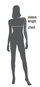 CHEST: Measure just under the arms, across fullest part of chest, around shoulder blades holding tape firm and level.